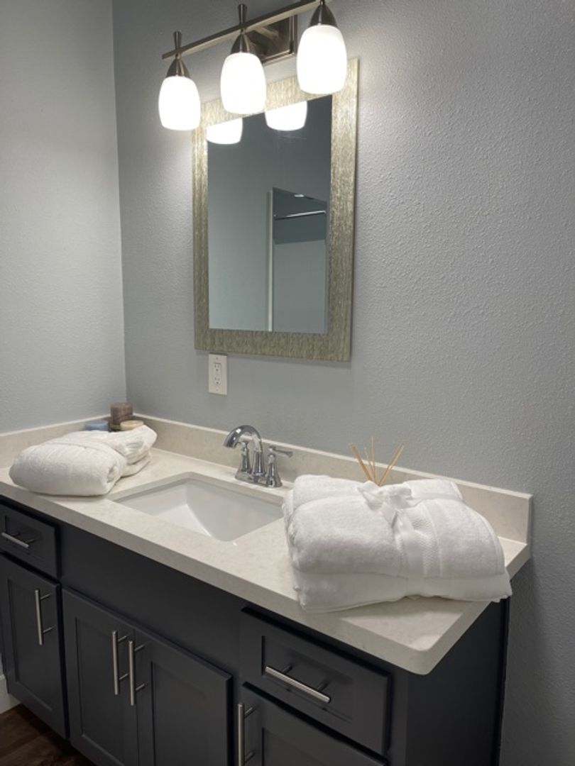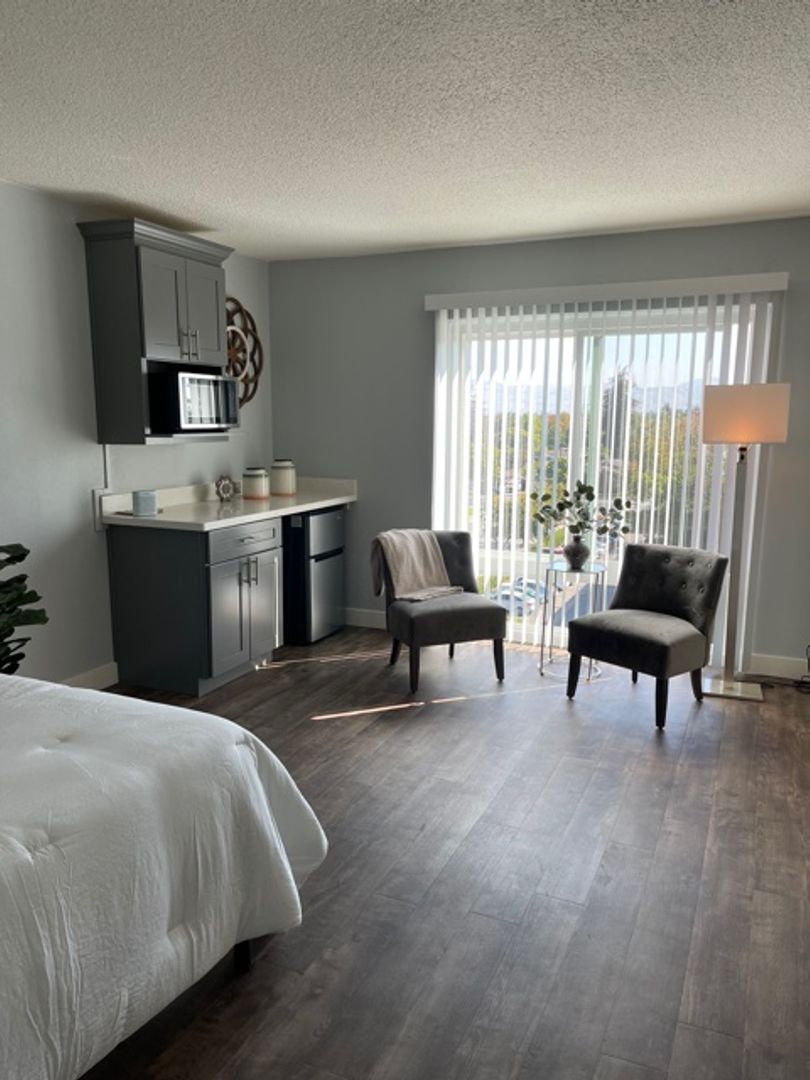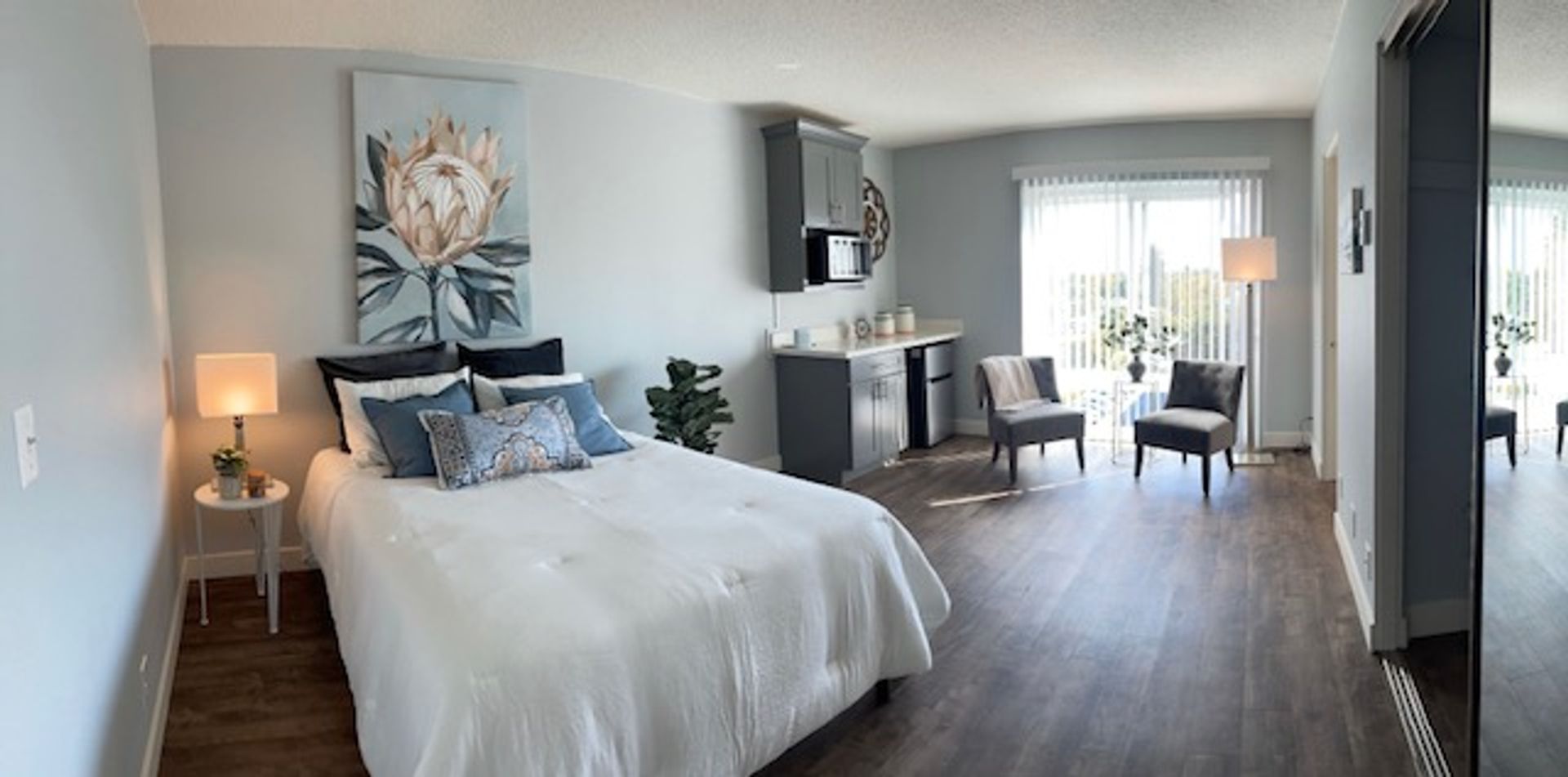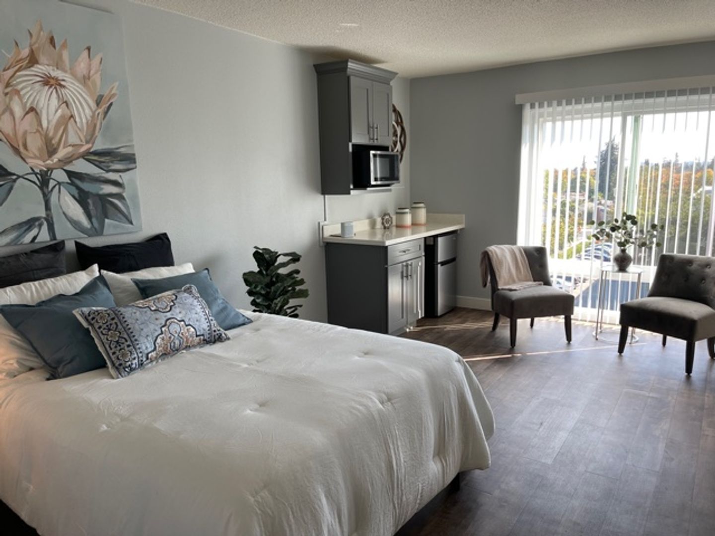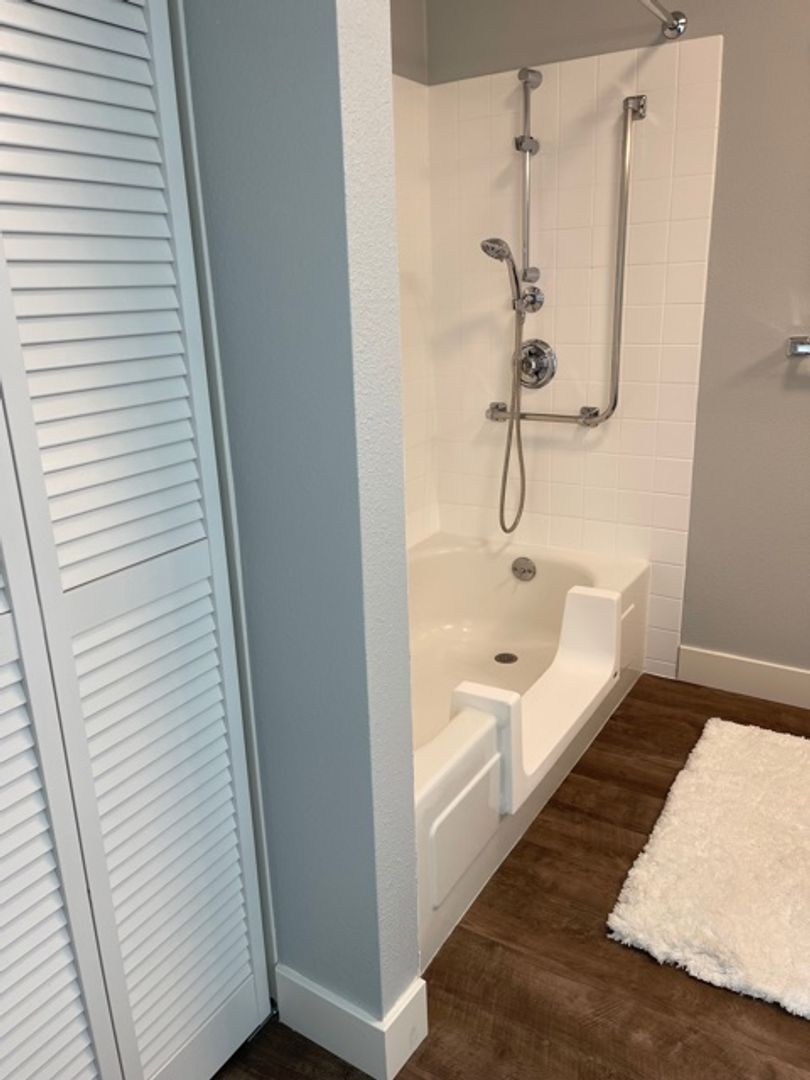 This apartment home features an upgraded living space with a private bathroom. The living area features a custom cabinet with counter space, wooden laminate flooring, large double paned window, a generous wardrobe closet, and an emergency pull cord. For your convenience, the bathroom has an emergency pull cord, grab bars, a linen closet with shelves, a tub cut out, and includes a shower wand in the shower. This apartment includes several premier packages to meet every lifestyle. Packages vary and can include daily meals, weekly housekeeping and linen services.Utilities and cable are included in all package prices.