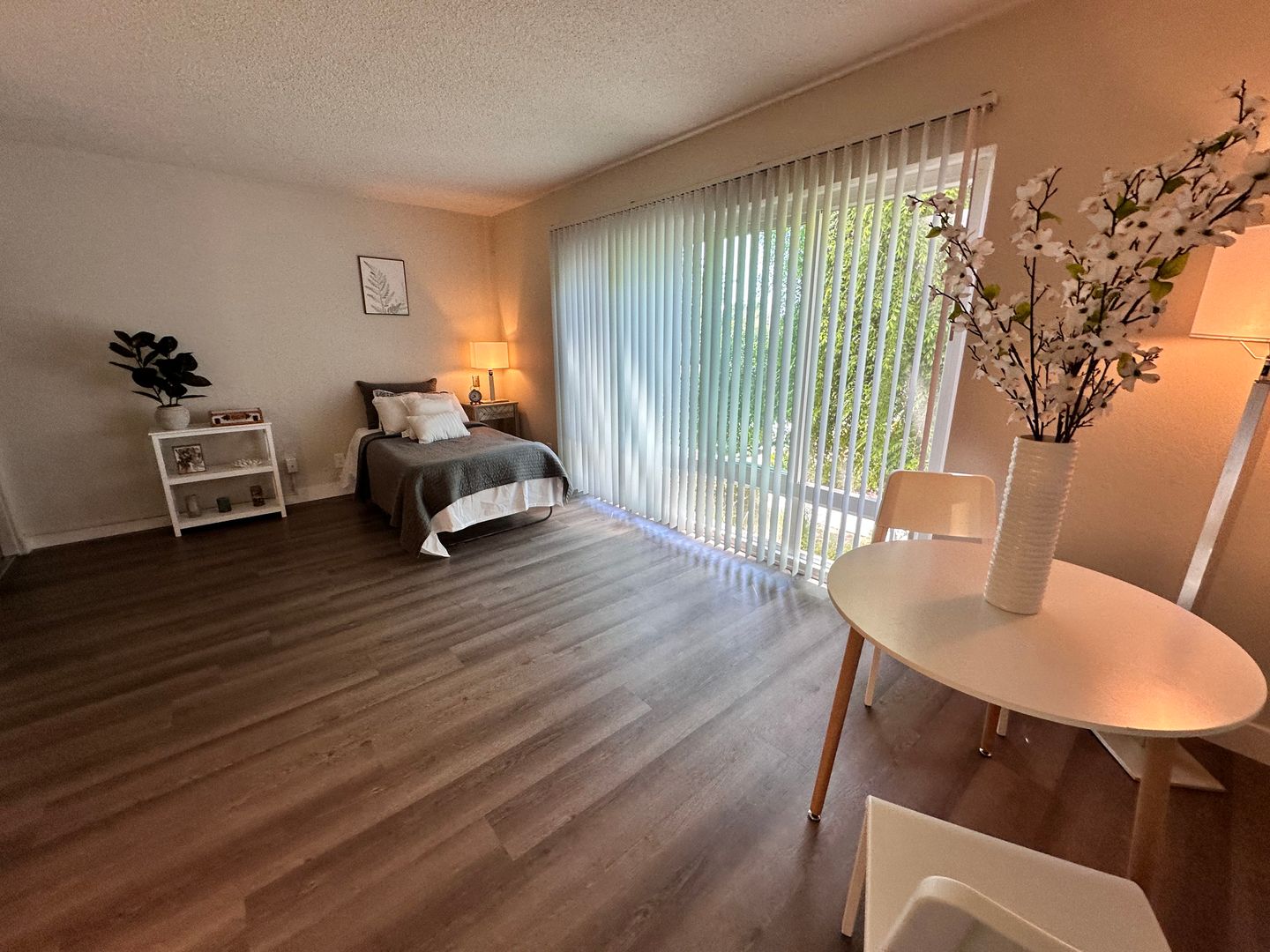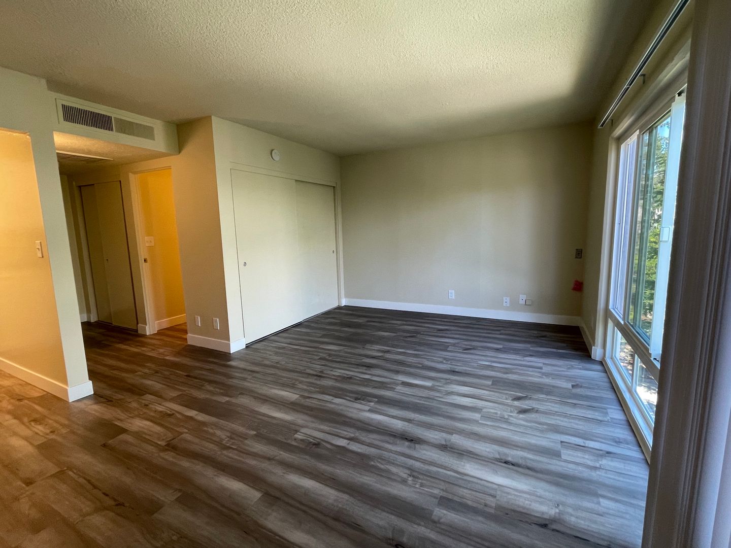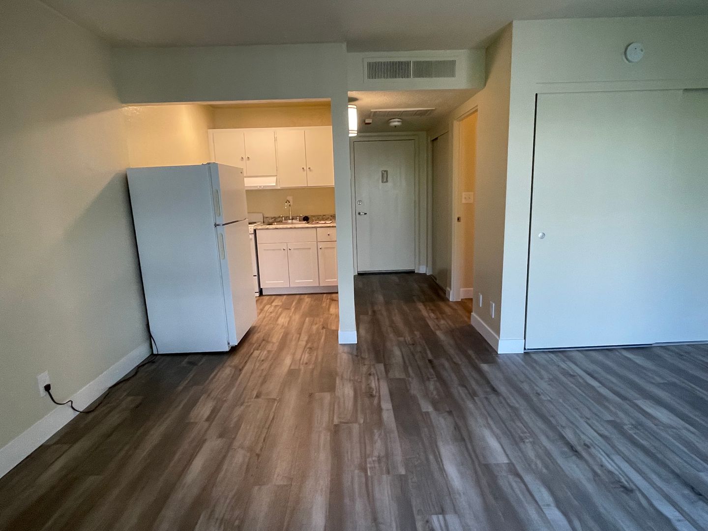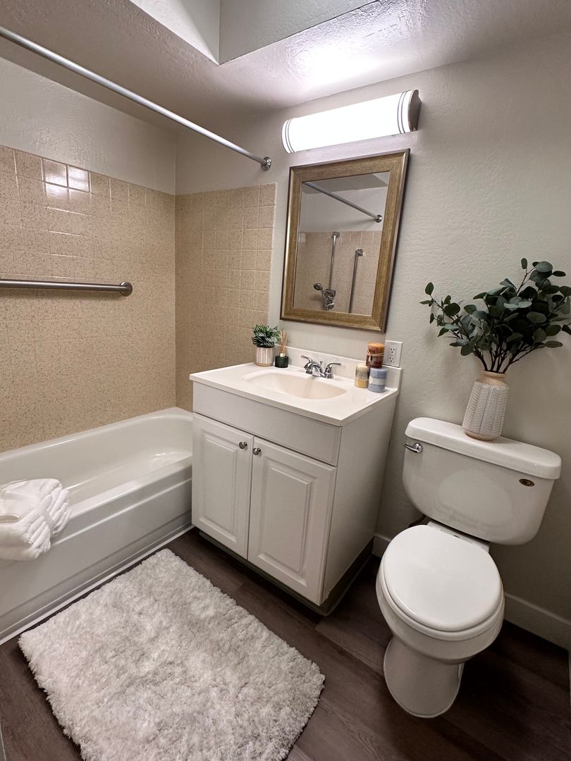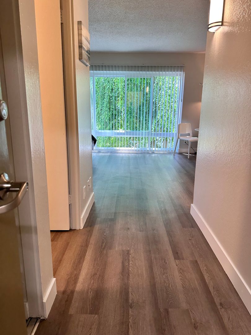 This apartment home features a living space open to a compact kitchen. As you walk into the apartment, there is a midsize coat and a linen closet. The kitchen includes cabinet space, an electric range, garbage disposal, and a full size refrigerator. The living area features a large double paned window, a generous wardrobe closet, and an emergency pull cord. For your convenience, the bathroom has an emergency pull cord, grab bars, and includes a shower wand in the shower. Rent includes one meal per day, utilities, and cable service.