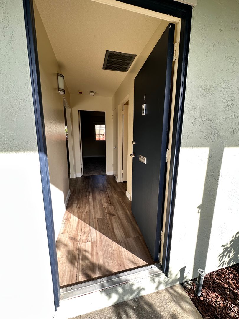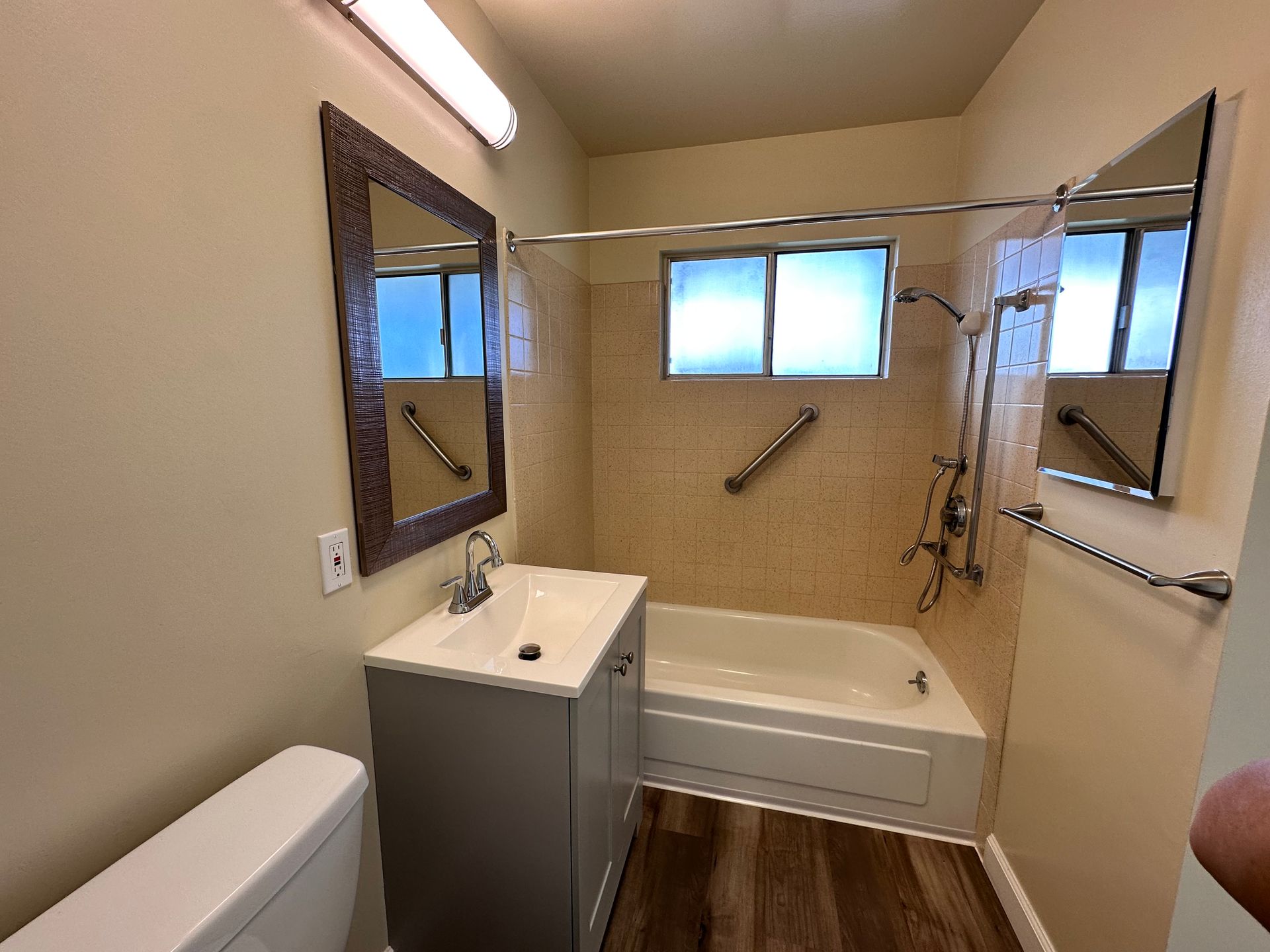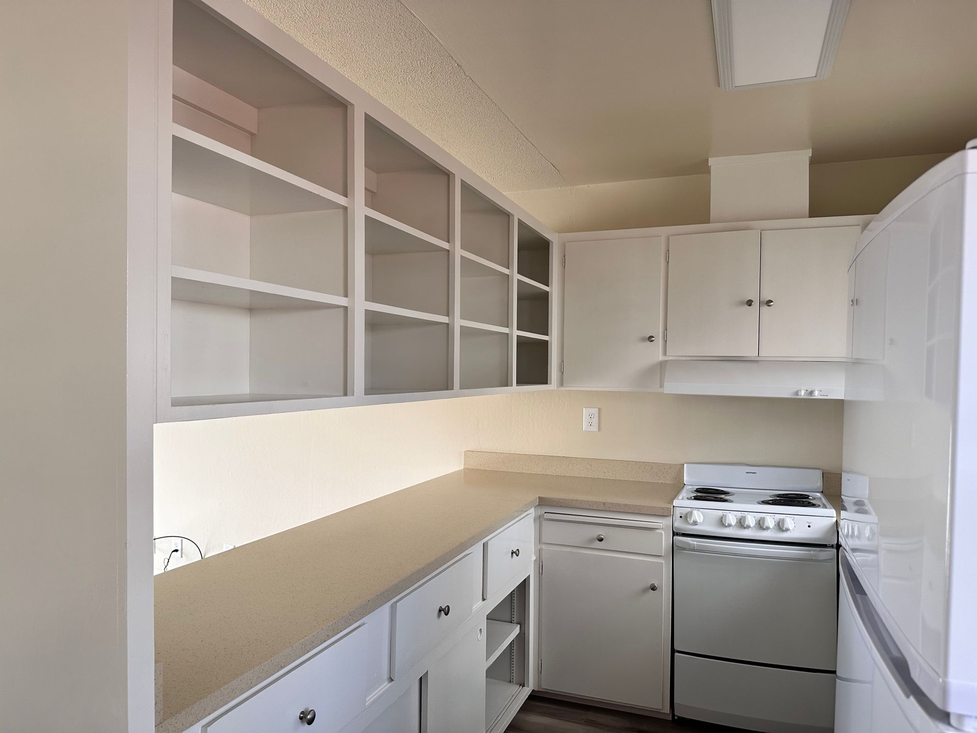 This apartment home features a sizeable living room connected to a kitchen, bathroom and separate bedroom space. As you walk into the apartment there is a midsize coat closet. The living room space features a large sliding glass window with great lighting. The kitchen includes cabinet space, an electric range, garbage disposal and a full size refrigerator. In the bedroom you will find a generous wardrobe closet. For your convenience the bathroom has grab bars and it includes a shower wand in the shower. The unit feautures a patch of greenery by the entrance as well as a fenced in back patio. Utilities and cable service are included with rent. Although this apartment does not include services such as meals or housekeeping in the rent, services may be added for additional fees.